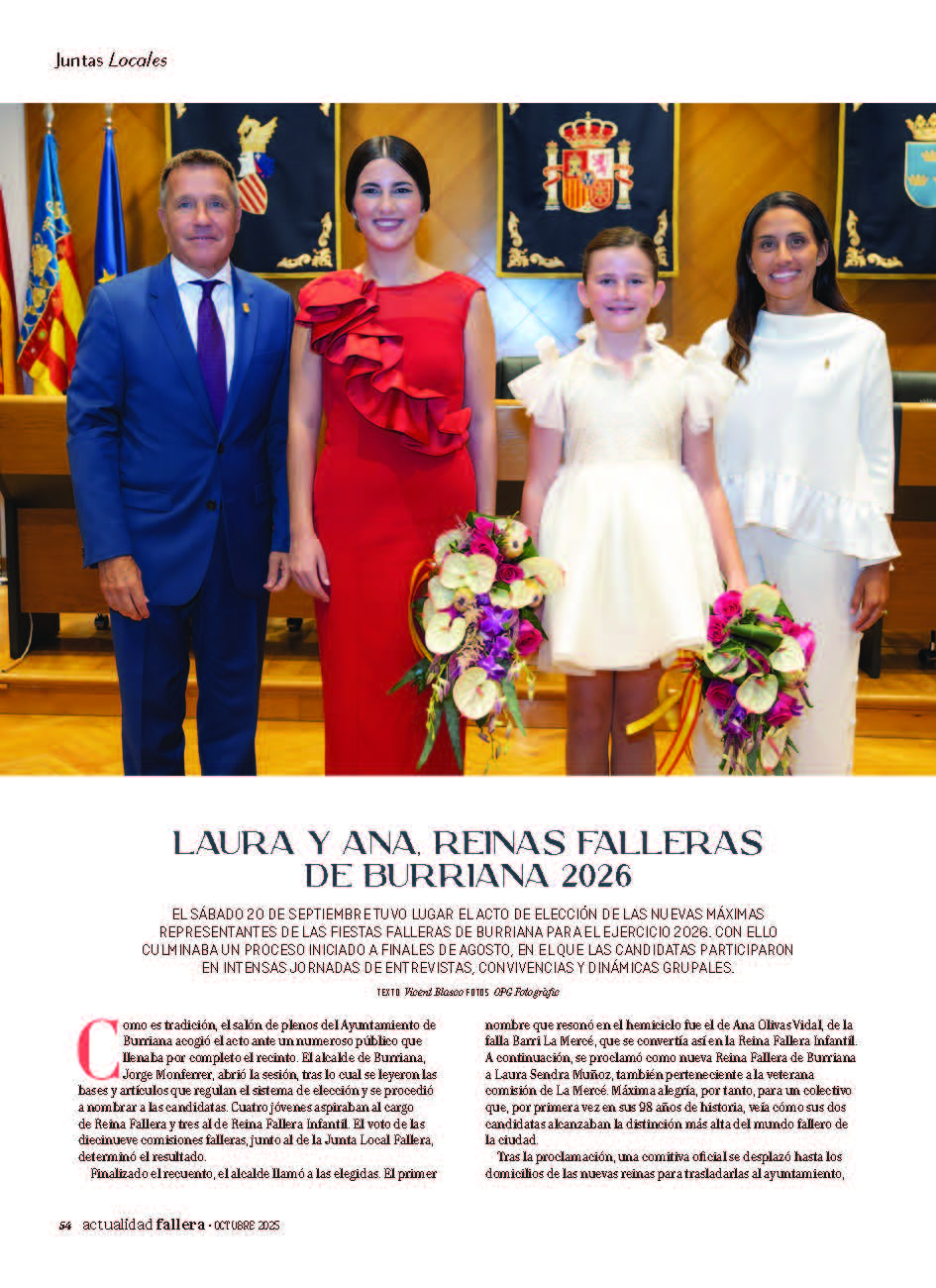 Elección de las Falleras Mayores y Cortes de Honor 2026.