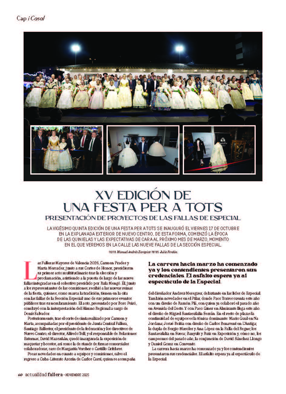- Cronista convierte la salud mental en eje de su proyecto social 2026. Camino de Alba homenajeó la solidaridad fallera. Falleras Mayores de Valencia 1931-2025.
